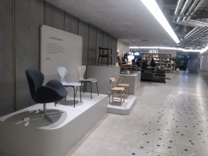 4Fにあるインテリアショップのアクタスの店舗はショップ間の境界線が曖昧で入りやすい空間になってます。エントランスに昔の名作椅子を展示しており、一部は実際に手をふれることが出来ました。